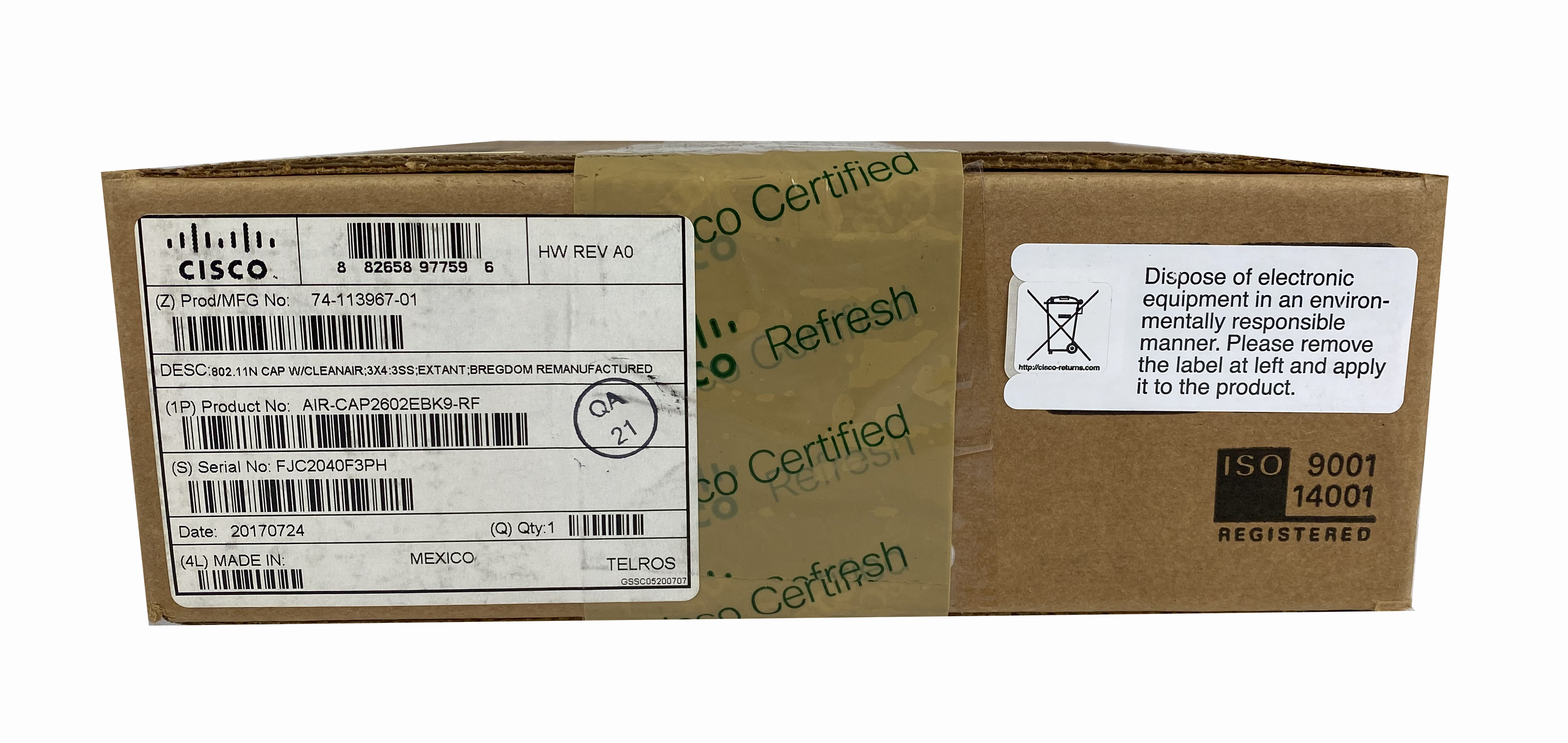 Access Point Cisco AIR-CAP2602E-BK9-RF 74-113967-01 802.11n 3×4 Dual Band