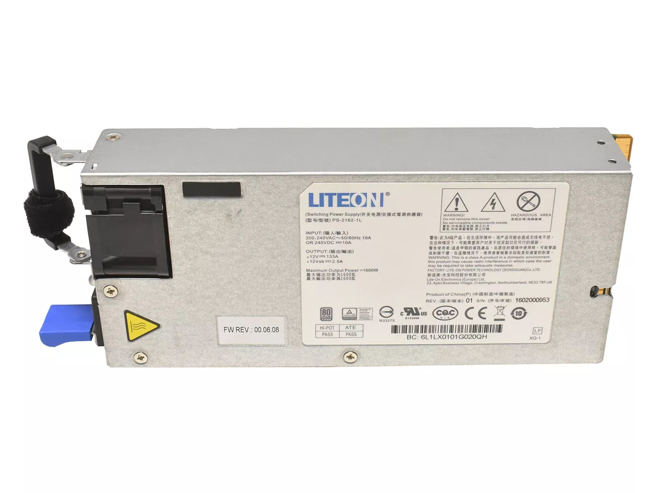 Offriamo l’alimentatore originale per server Liteon PS-2162-1LR da 1800 W, certificato secondo lo standard 80 PLUS Platinum, progettato per funzionare con i server Quanta T42S-2U e i sistemi ZT System. L’alimentatore è di tipo Hot-Swap, il che consente la sua sostituzione senza dover spegnere il server, garantendo la continuità operativa in ambienti critici.