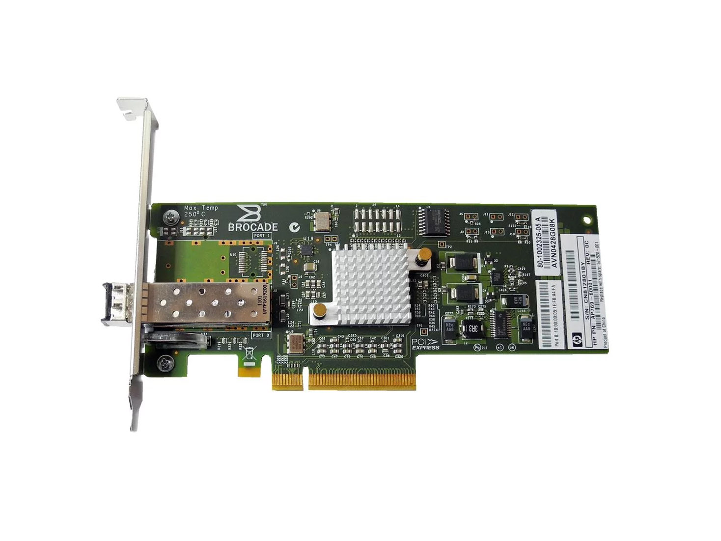 Scheda di rete Brocade 815 | HP AP769-60001 | 1x SFP+ Fibre Channel 8Gb | PCIe x8 | Profilo completo | 571520-001 | + GBIC